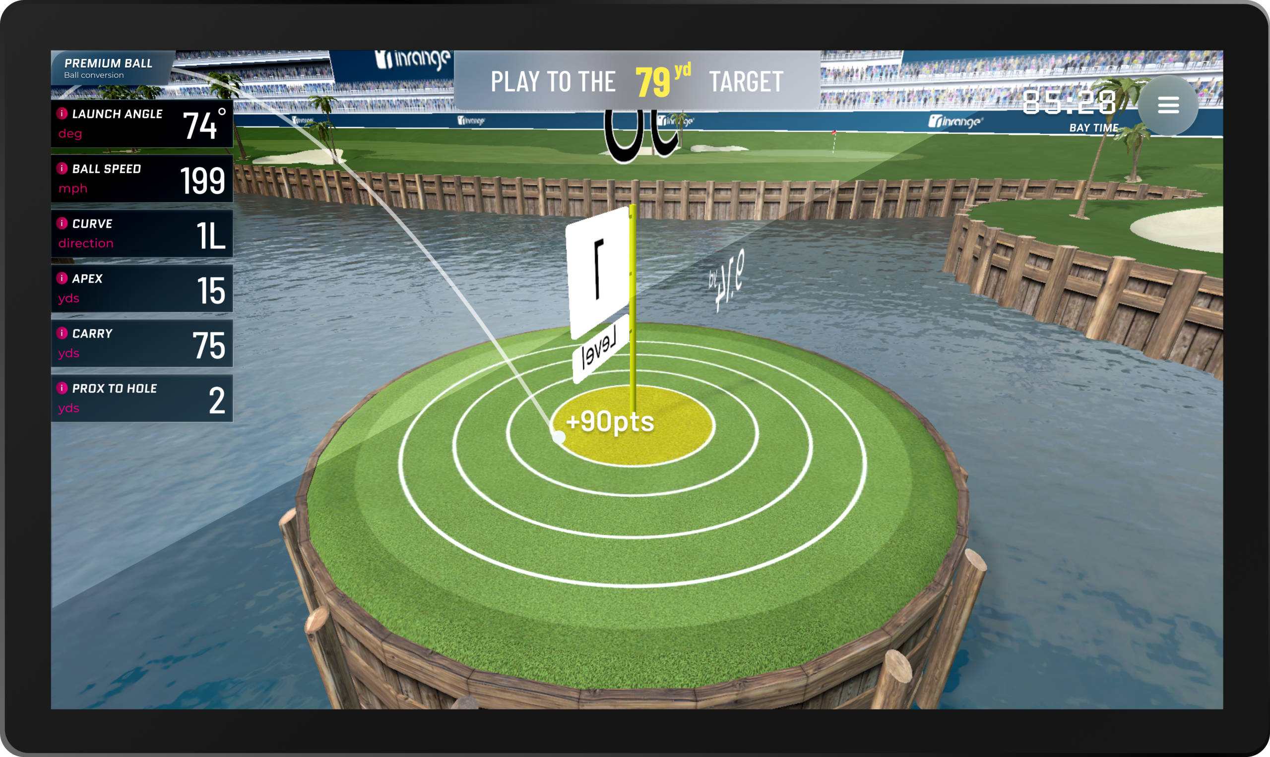 Sla de bal in range zo dicht mogelijk bij de vlag. Alleen geldige slagen tellen mee. De bal die het dichtst bij de pin ligt, wint
