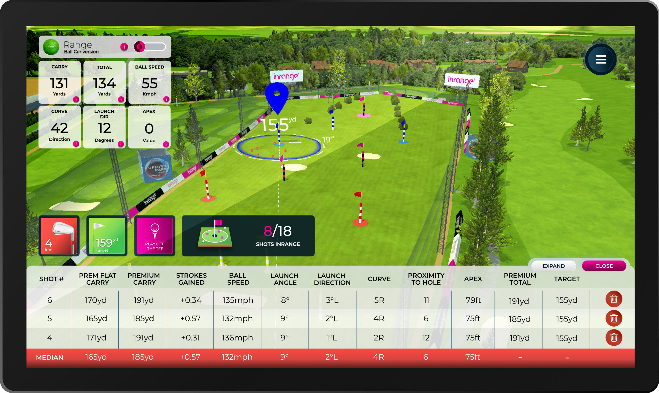 Een échte gamechanger! Met de Inrange radar tracking technologie krijgt golf bij Golfcentrum Roosendaal een extra dimensie. Golf als interactieve game. Ideaal om alleen te oefenen en geweldig om met vrienden te spelen. IN range is een geavanceerd radarsysteem dat al je slagen volgt met uiterste nauwkeurigheid. Alles wordt geregistreerd en geanalyseerd: elke balbeweging en -locatie, de afstand, balsnelheid, lanceerhoek, clubstatistieken, spreidingsgrafieken, gewonnen (of verloren) slagen en nog veel meer!